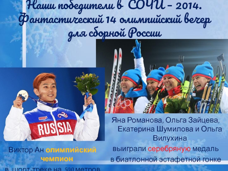 Вик Уайлд- Олимпийский чемпион и Алёна Заварзина бронзовый призёр