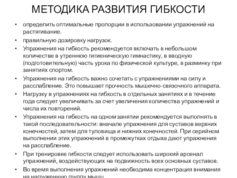 Слайд 14МЕТОДИКА РАЗВИТИЯ ГИБКОСТИ