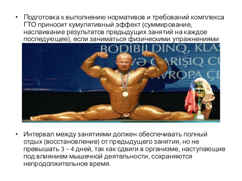 Слайд 17Подготовка к выполнению нормативов и требований комплекса ГТО приносит кумулятивный эффект