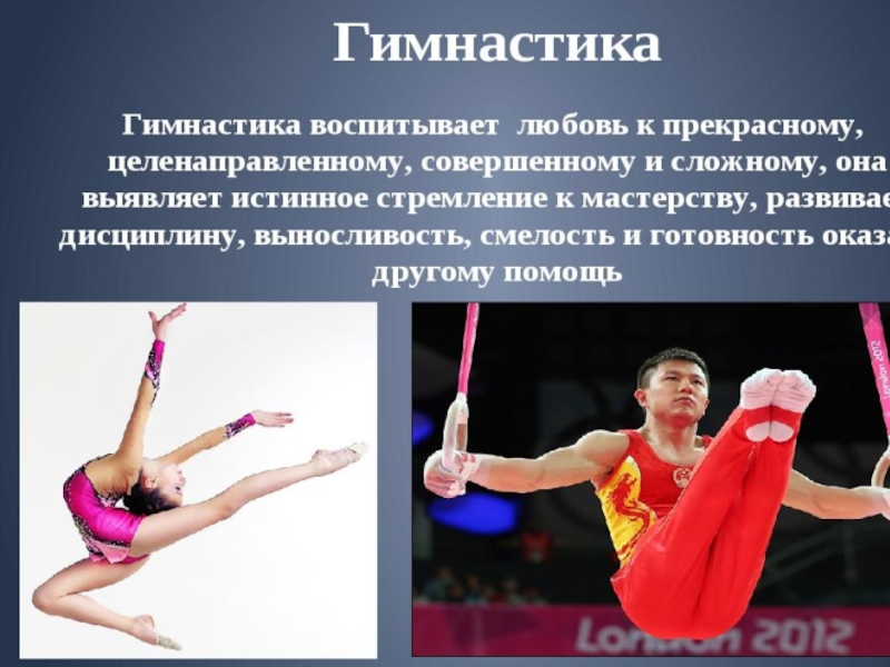 Слайд 11Художественная гимнастика — вид спорта, выполнение под музыку различных гимнастических и