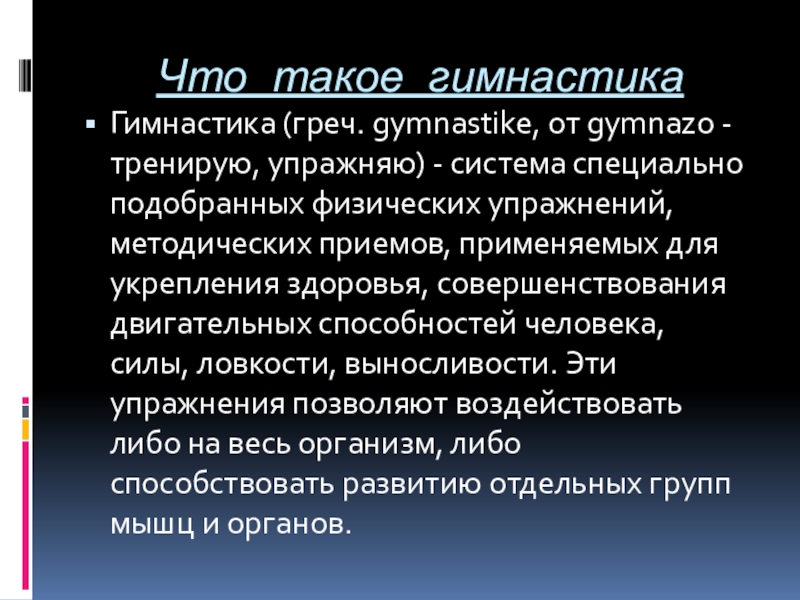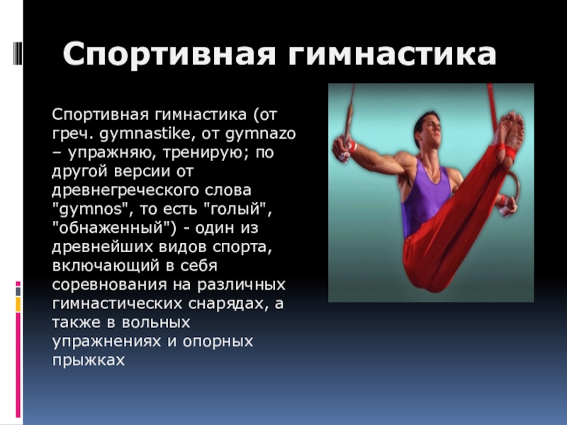 Спортивная гимнастика (от греч. gymnastike, от gymnazo – упражняю, тренирую;