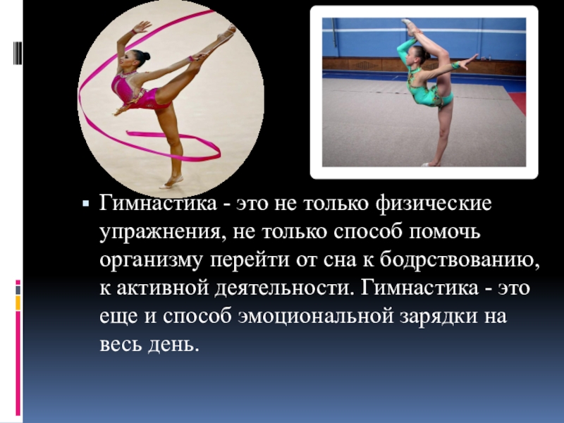 Слайд 5Гимнастика - это не только физические упражнения, не только способ помочь