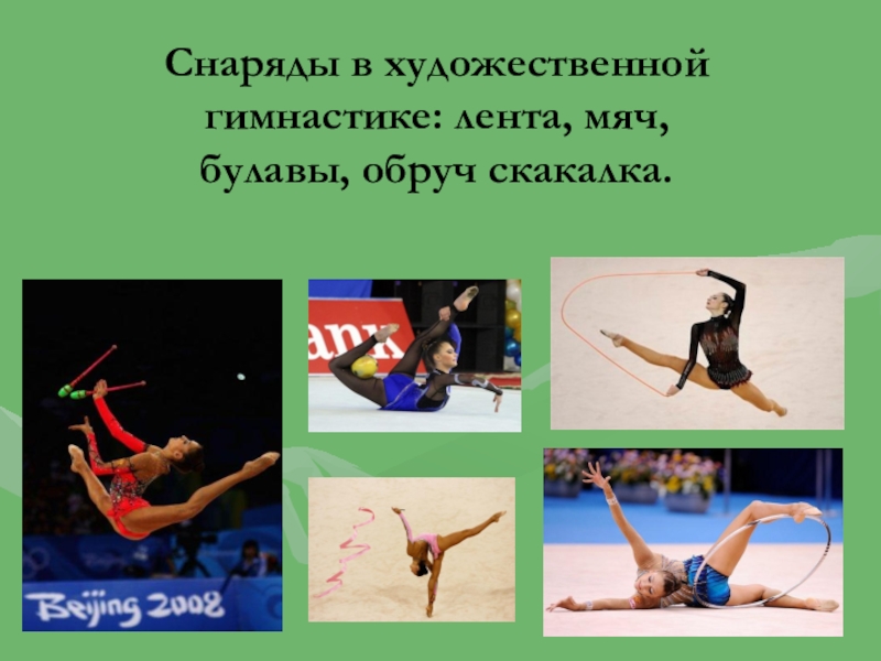 Упражнения на бревне содержат различные передвижения, прыжки, повороты, перевороты, сальто, танцевальные элементы, а также в ограниченном объеме статические положения и позы.