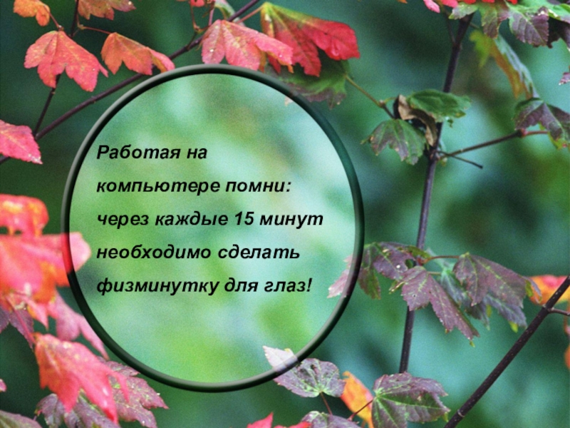 Слайд 10Работая на компьютере помни: через каждые 15 минут необходимо сделать физминутку