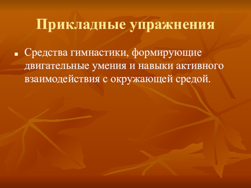 Прикладные упражненияСредства гимнастики, формирующие двигательные умения и навыки активного взаимодействия с окружающей средой.