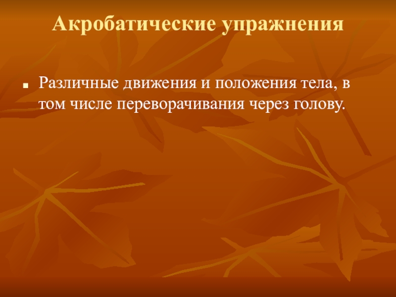 Акробатические упражнения Различные движения и положения тела, в том числе переворачивания через голову.