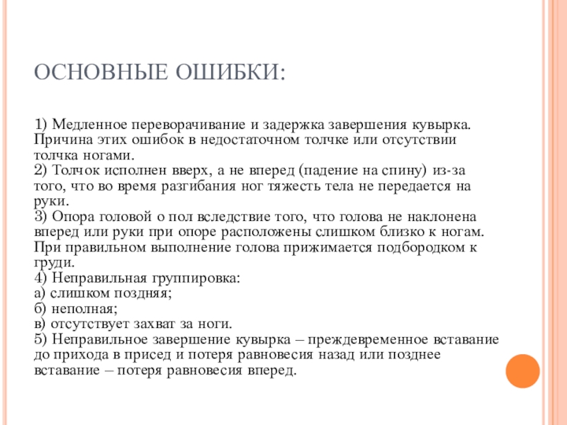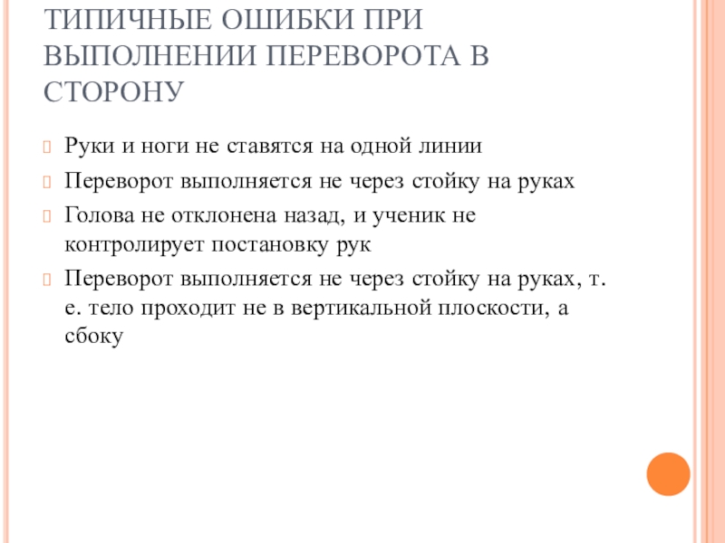 Слайд 22ТИПИЧНЫЕ ОШИБКИ ПРИ ВЫПОЛНЕНИИ ПЕРЕВОРОТА В СТОРОНУ