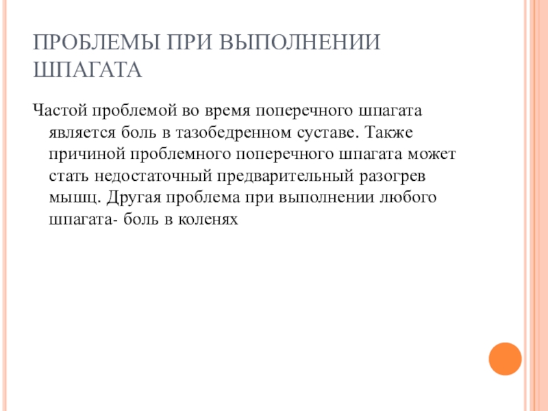 Слайд 14ПРОБЛЕМЫ ПРИ ВЫПОЛНЕНИИ ШПАГАТА