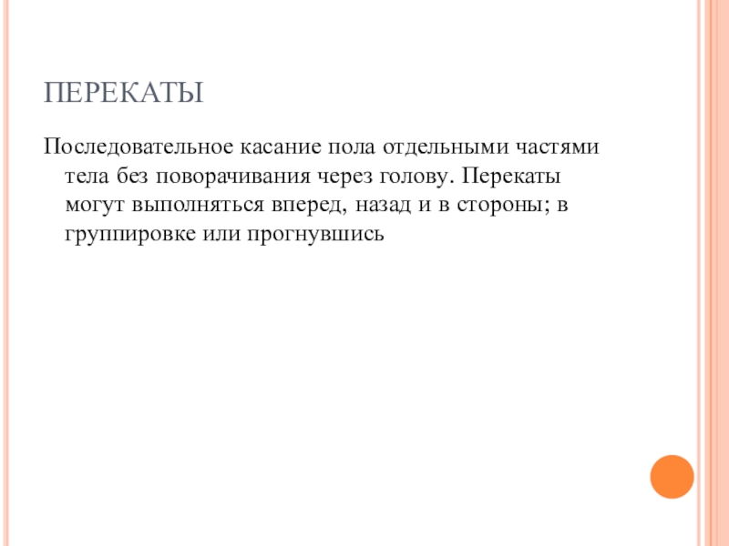 Последовательное касание пола отдельными частями тела без поворачивания через голову. Перекаты