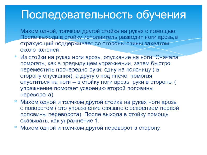 СТОЙКА НА РУКАХ МАХОМ ОДНОЙ И ТОЛЧКОМ ДРУГОЙ