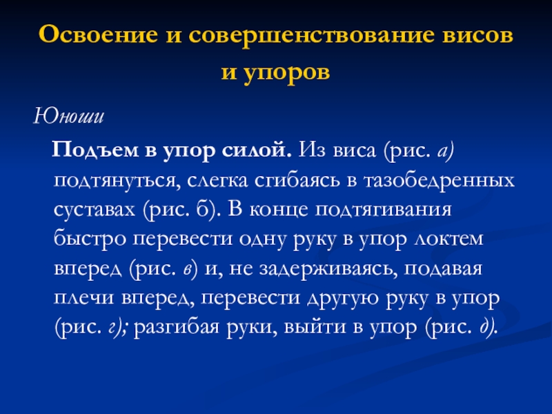 Слайд 104Размахивание в упоре до выведения стоп выше жердей.