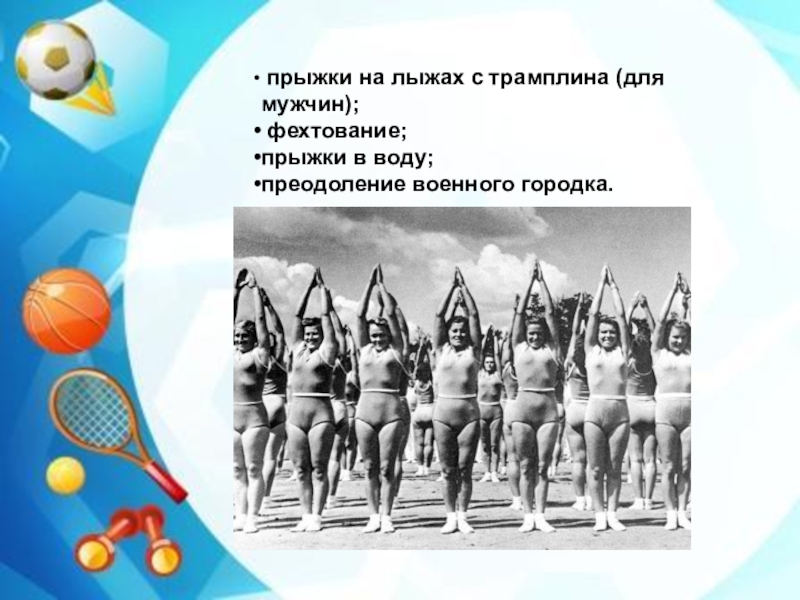 Слайд 9 прыжки на лыжах с трамплина (для мужчин);