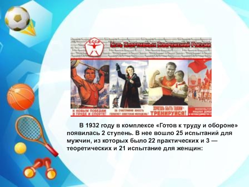 Слайд 8 В 1932 году в комплексе «Готов к труду и обороне» появилась