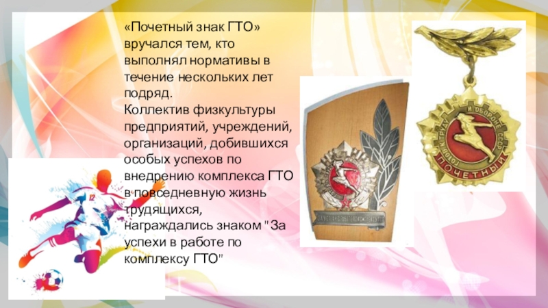 Слайд 17«Почетный знак ГТО» вручался тем, кто выполнял нормативы в течение нескольких