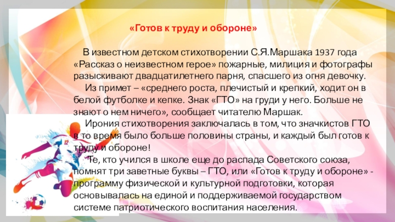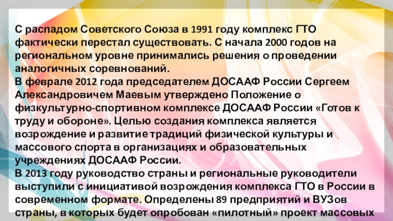 Слайд 18С распадом Советского Союза в 1991 году комплекс ГТО фактически перестал