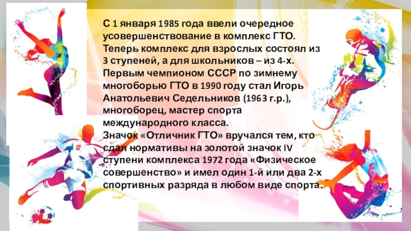 Слайд 16С 1 января 1985 года ввели очередное усовершенствование в комплекс ГТО.