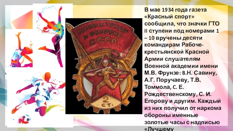Слайд 8В мае 1934 года газета «Красный спорт» сообщила, что значки ГТО