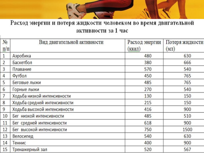 Энергетическая стоимость тренировочных нагрузок строго индивидуальна и зависит от пола,
