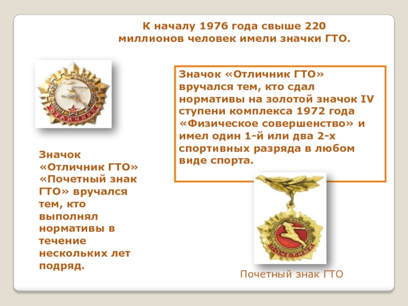 «Почетный знак ГТО» вручался тем, кто выполнял нормативы в течение нескольких лет подряд.