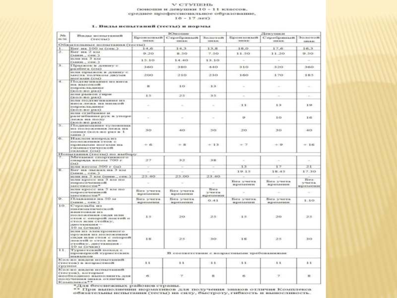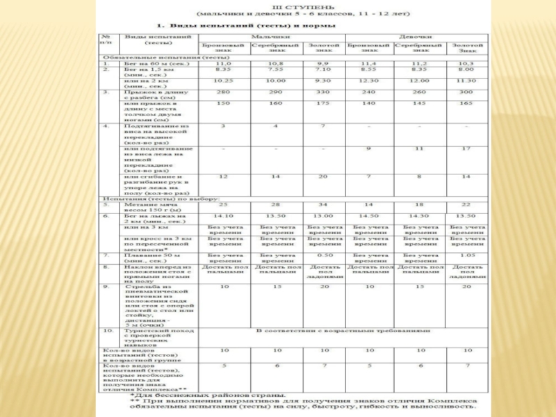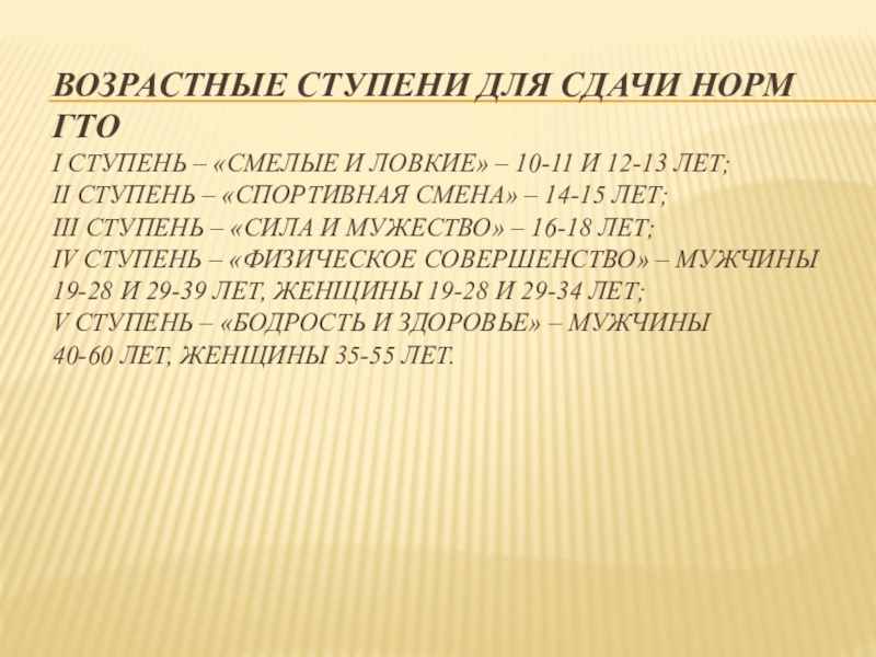 Слайд 25Возрастные ступени для сдачи норм ГТО