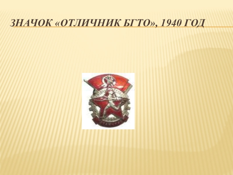 Слайд 15Значок «Отличник БГТО», 1940 год