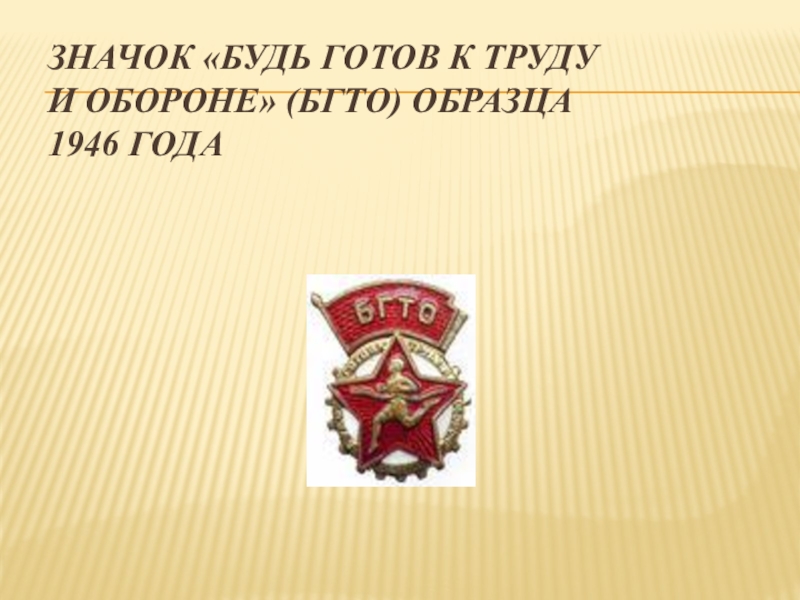 Слайд 18Значок «Будь готов к труду и обороне» (БГТО) образца 1946 года