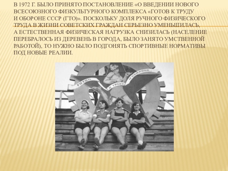 Слайд 6В 1972 г. было принято постановление «О введении нового Всесоюзного физкультурного комплекса «Готов к труду