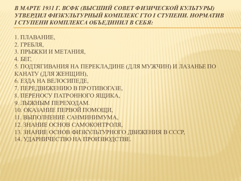 Слайд 9В марте 1931 г. ВСФК (Высший совет физической культуры) утвердил физкультурный