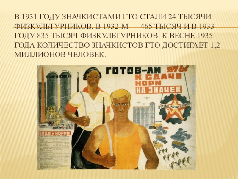 Слайд 4В 1931 году значкистами ГТО стали 24 тысячи физкультурников, в 1932-м