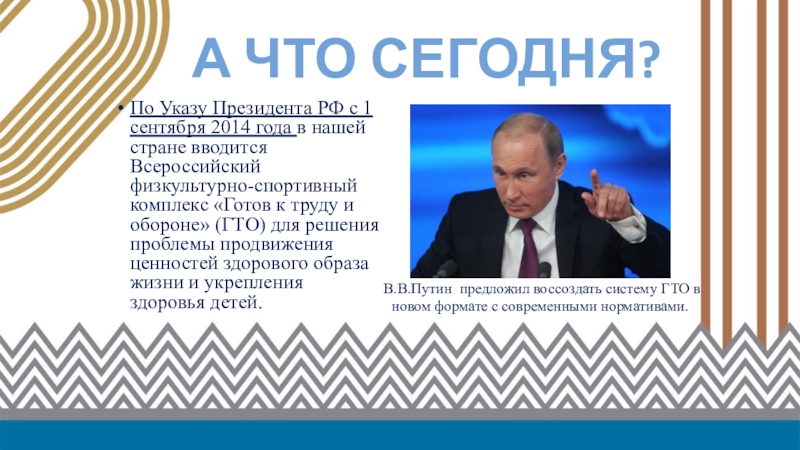 В.В.Путин предложил воссоздать систему ГТО в новом формате с современными нормативами.