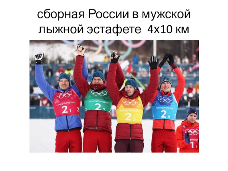 Слайд 15сборная России в мужской лыжной эстафете 4х10 км