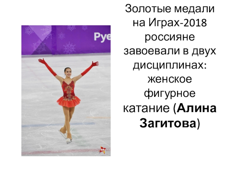 Слайд 9Золотые медали на Играх-2018 россияне завоевали в двух дисциплинах: женское фигурное