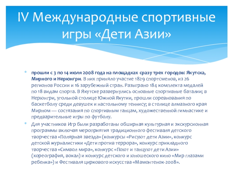 IV Международные спортивные игры «Дети Азии»