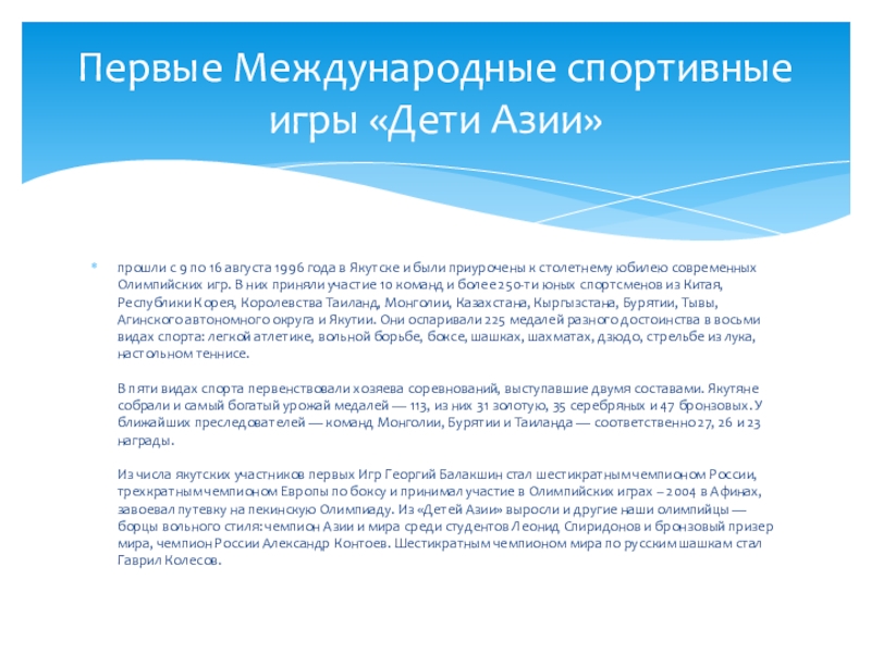 Первые Международные спортивные игры «Дети Азии»