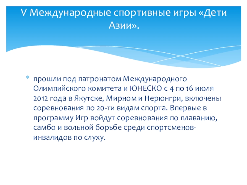 V Международные спортивные игры «Дети Азии».