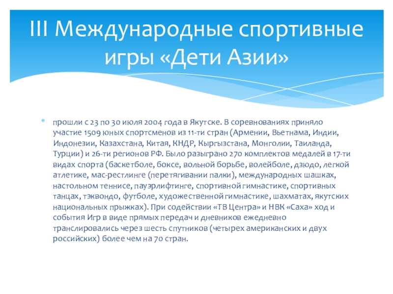 III Международные спортивные игры «Дети Азии»