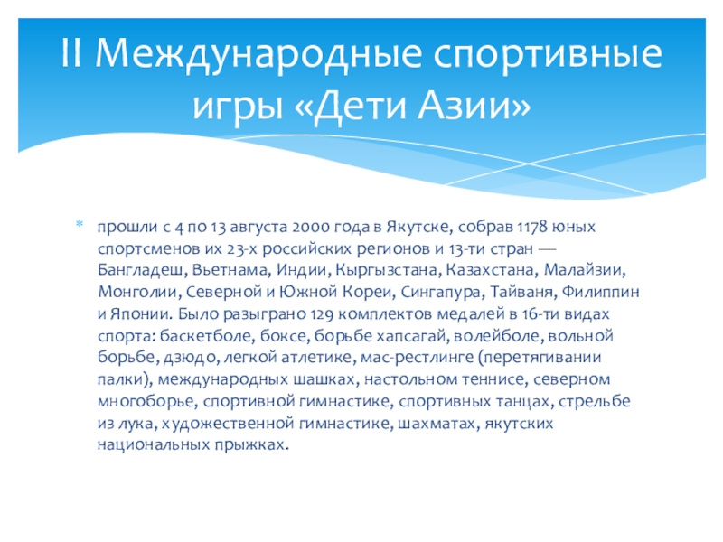 II Международные спортивные игры «Дети Азии»