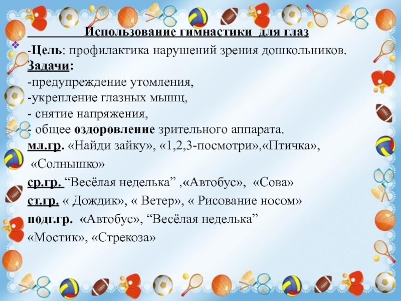 мл.гр.» Растирание ладони», «Озорные мишки», «Гусь», «Человечки»