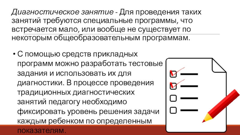 Слайд 11Диагностическое занятие - Для проведения таких занятий требуются специальные программы, что