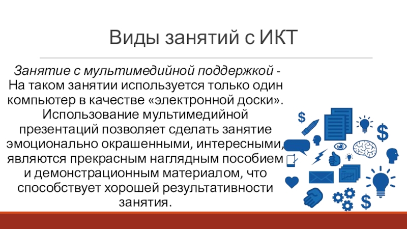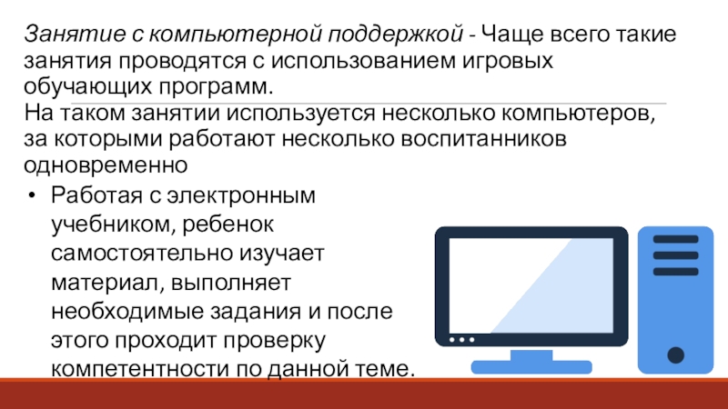 Слайд 10Занятие с компьютерной поддержкой - Чаще всего такие занятия проводятся с
