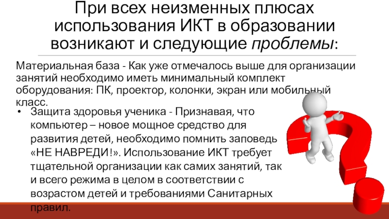 Слайд 14При всех неизменных плюсах использования ИКТ в образовании возникают и следующие проблемы: