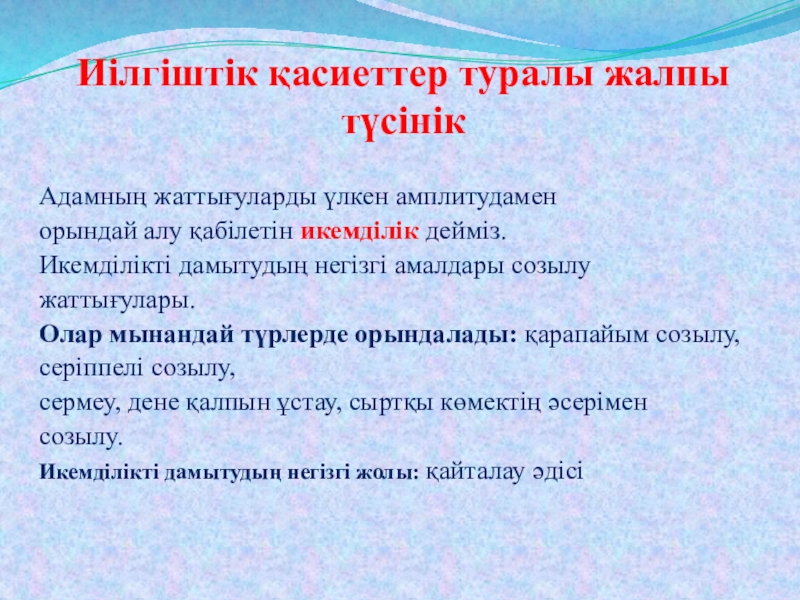 Иілгіштік қасиеттер туралы жалпы түсінік