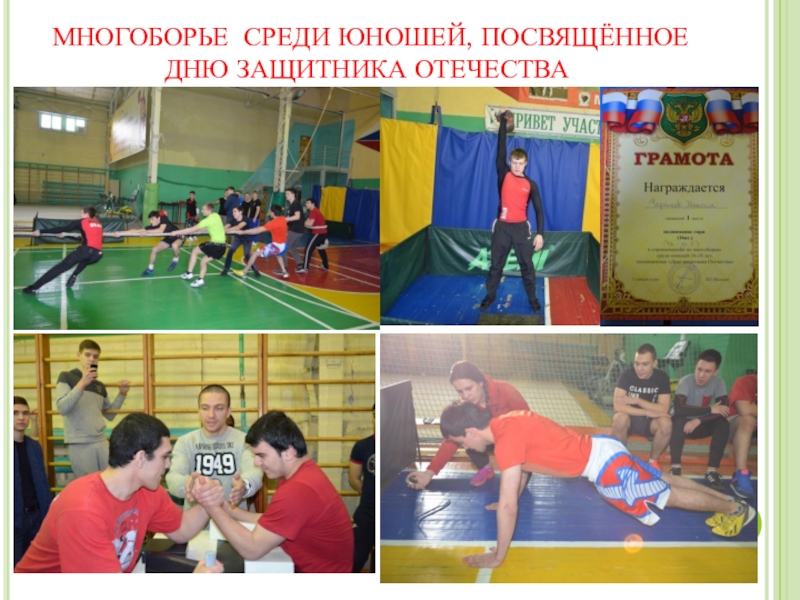 Слайд 13МНОГОБОРЬЕ СРЕДИ ЮНОШЕЙ, ПОСВЯЩЁННОЕ ДНЮ ЗАЩИТНИКА ОТЕЧЕСТВА