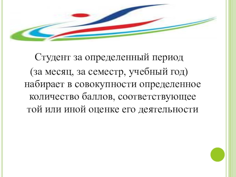 Студент за определенный период (за месяц, за семестр, учебный год) набирает в совокупности определенное количество баллов, соответствующее