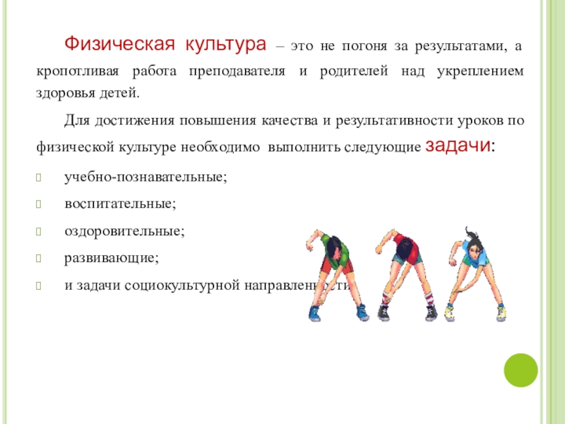 Слайд 5Физическая культура – это не погоня за результатами, а кропотливая работа