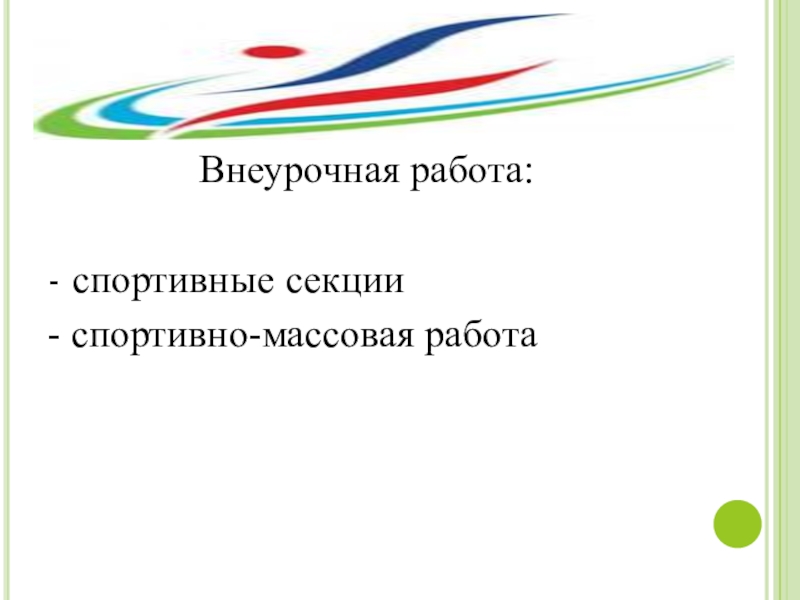Внеурочная работа: - спортивные секции - спортивно-массовая работа