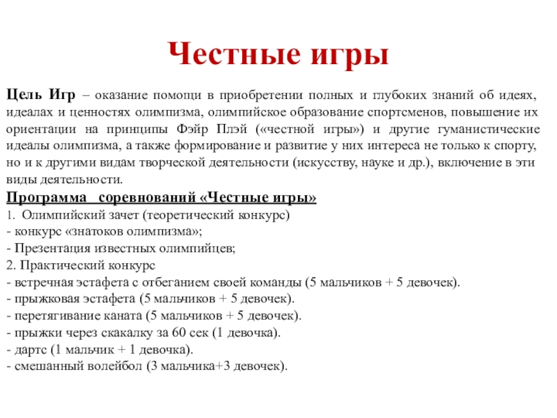 Программа соревнований «Честные игры»