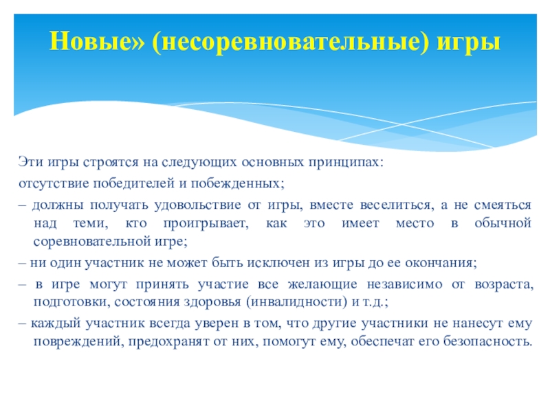 3. «Новые» (несоревновательные) игры.