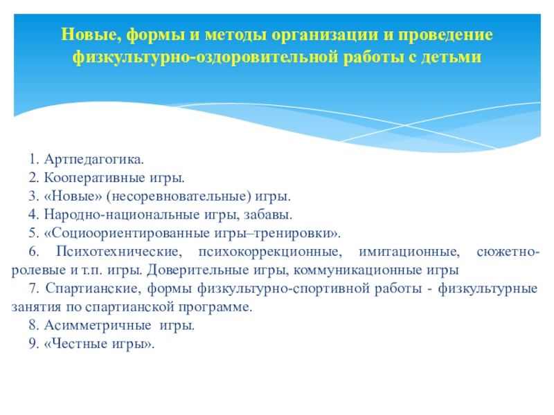 Новые, формы и методы организации и проведение физкультурно-оздоровительной работы с детьми