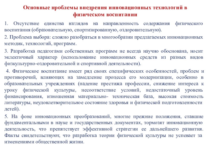 Объективные основания инновационных процессов в физическом воспитании